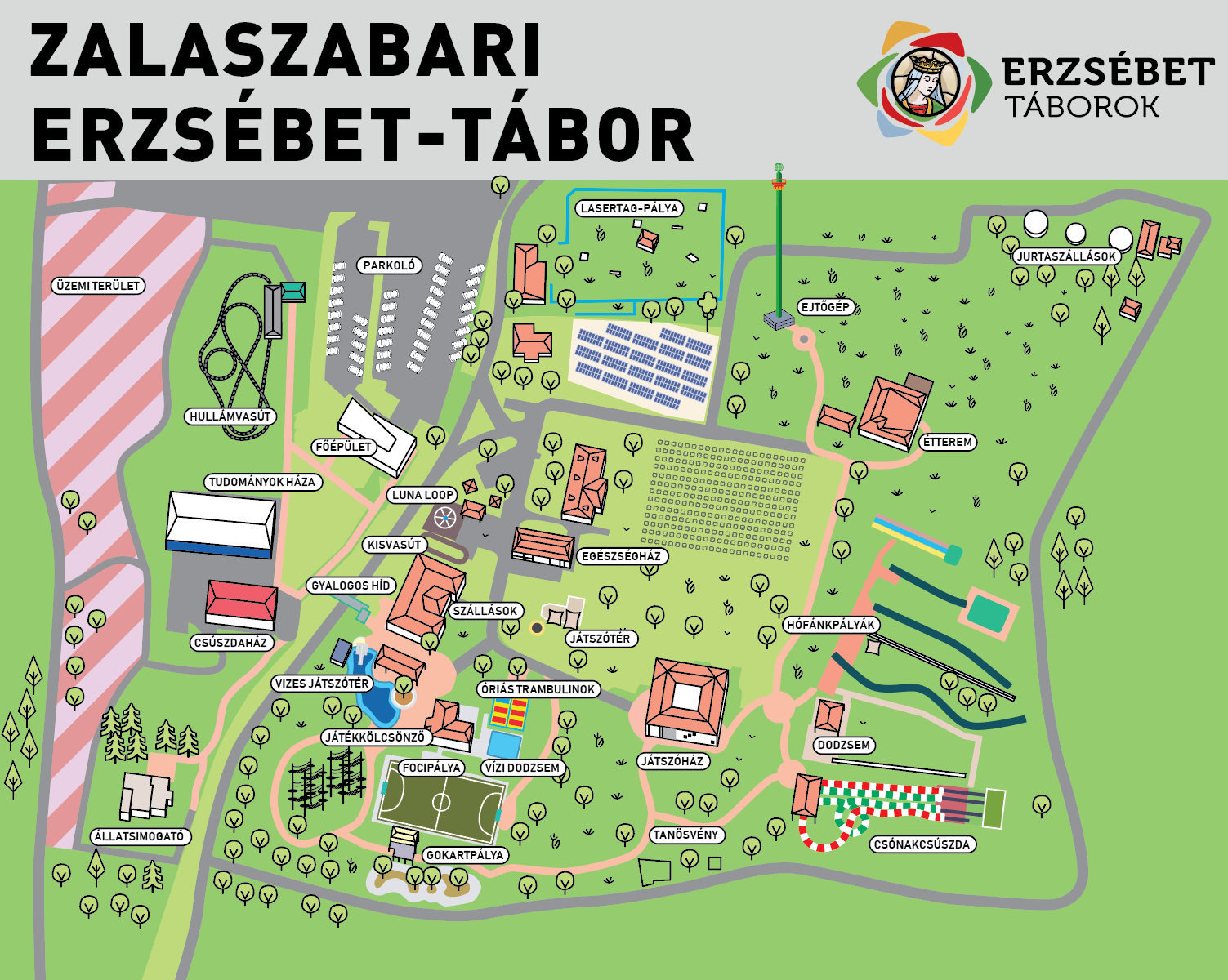 A Gyógyító Szent Erzsébet-táborok fő helyszíne a Zalaszabari Erzsébet-tábor, amelynek egyik különlegessége, hogy egy élménypark területén helyezkedik el, továbbá olyan kivételes programhelyszínekkel, infrastruktúrával és berendezésekkel rendelkezik, amelyek egyedi és megismételhetetlen élményeket képesek nyújtani a gyermekeknek. Itt található Magyarország egyetlen működő hullámvasútja, valamint rendelkezésre állnak ismeretterjesztésre kiemelten alkalmas helyszínek is, továbbá sportpálya, beltéri játszóház, vizes játszótér, állatsimogató, óriástrambulinok, hófánkpálya, 4D mozi és óriáscsúszda is a tábori kikapcsolódást szolgálják.